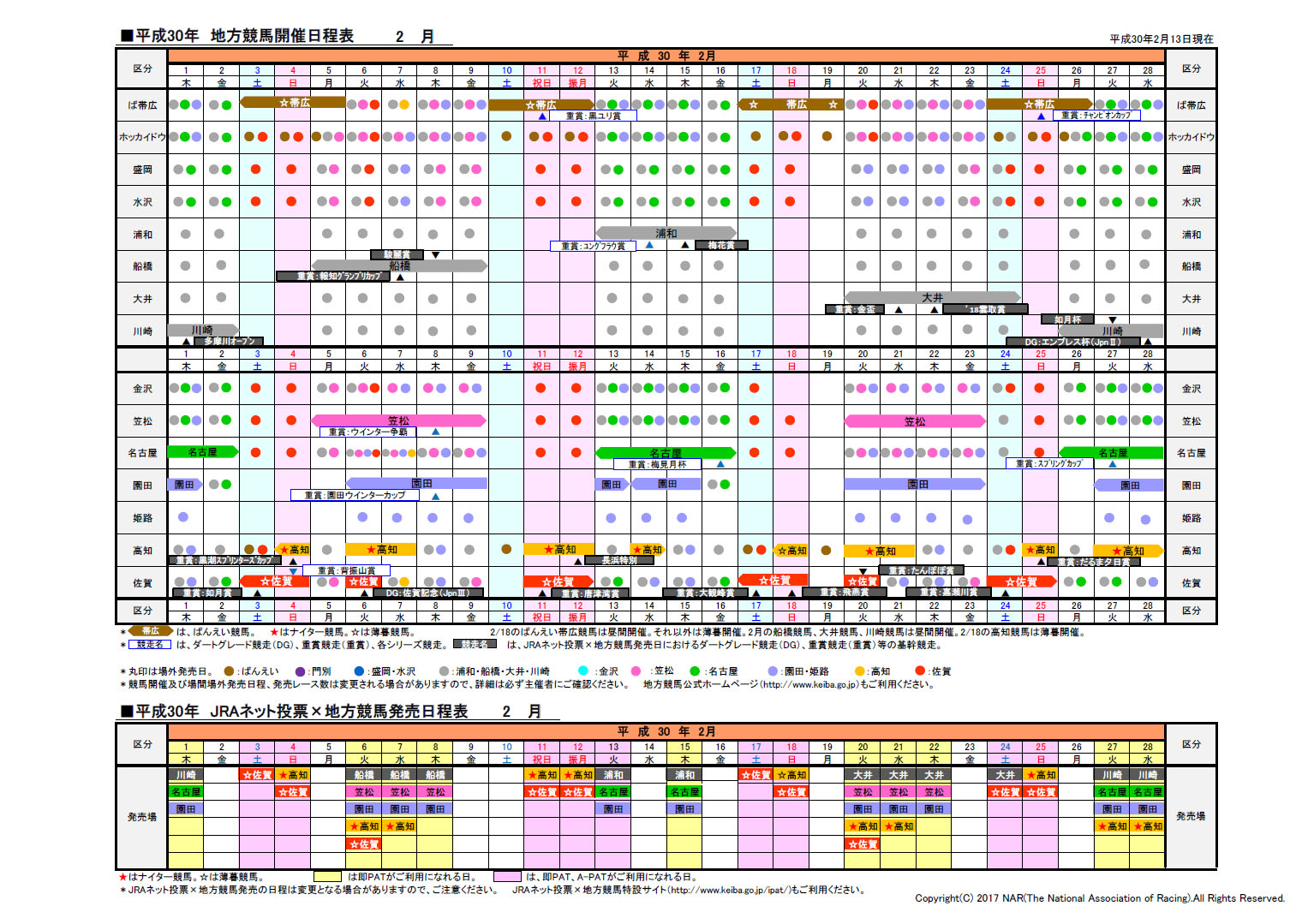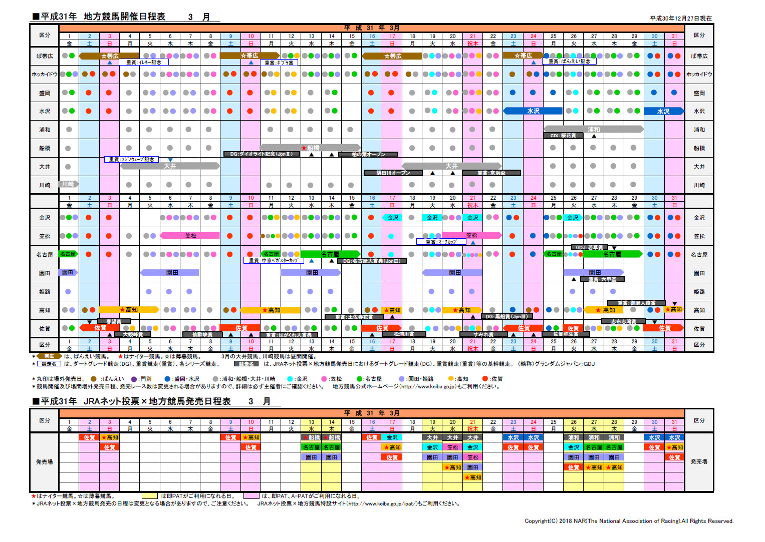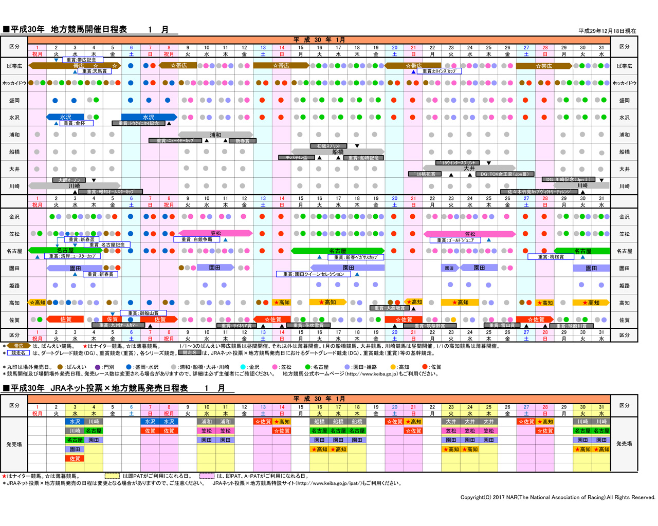 2018年日程表ダウンロード