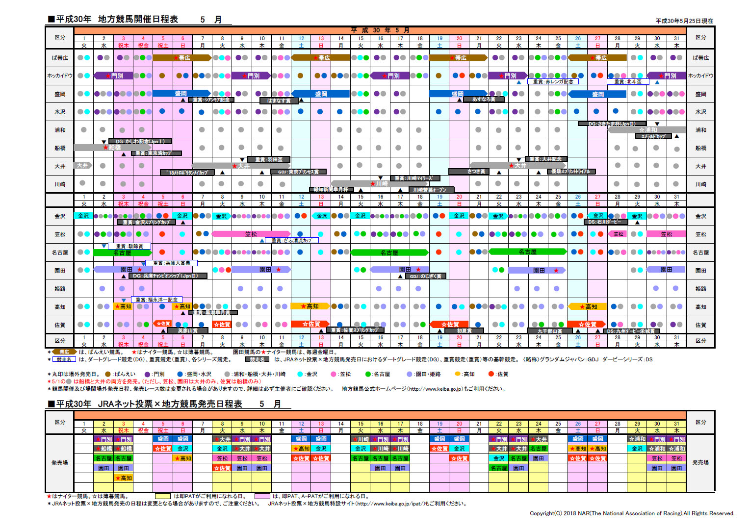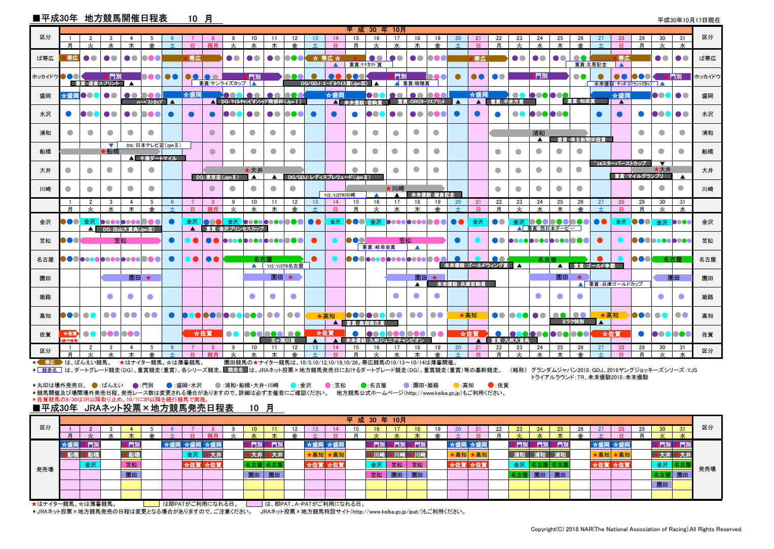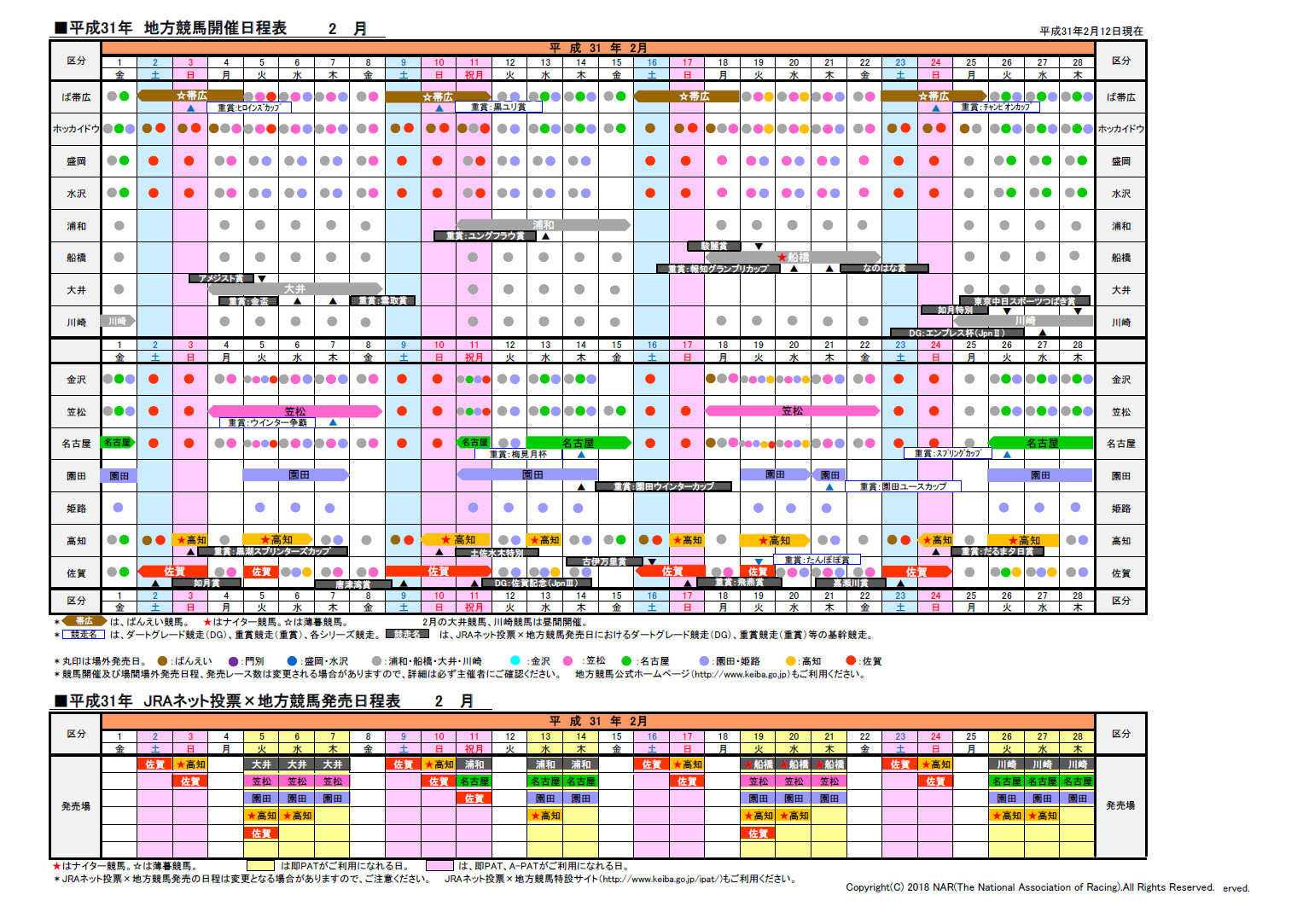 2018年日程表ダウンロード