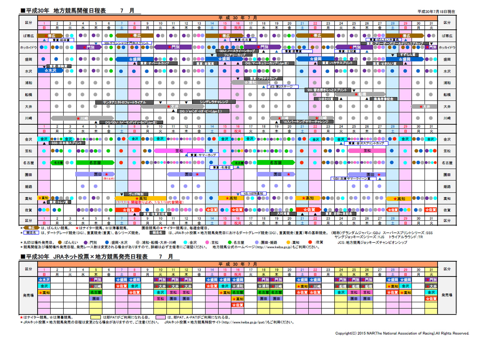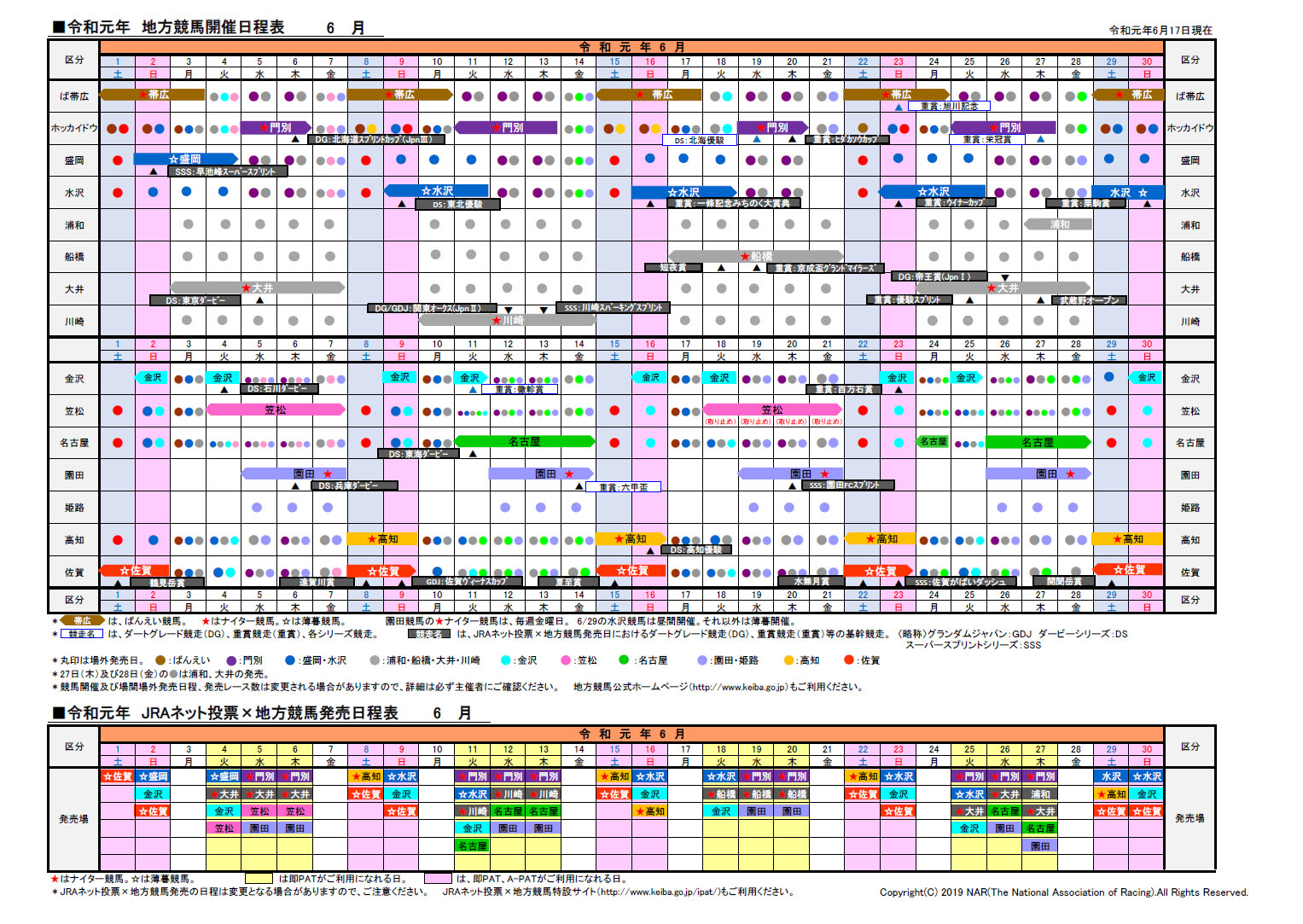 開催日程表 ※7月以降の開催日程表についてはRacing Scheduleをご確認ください。