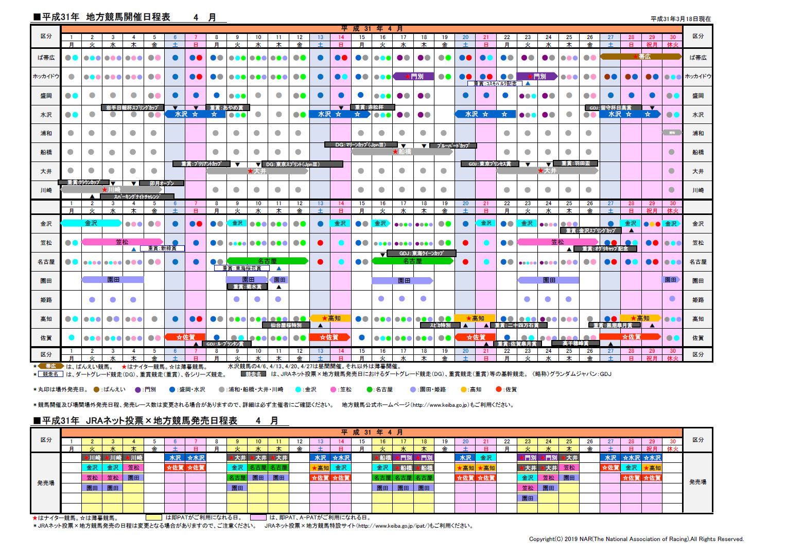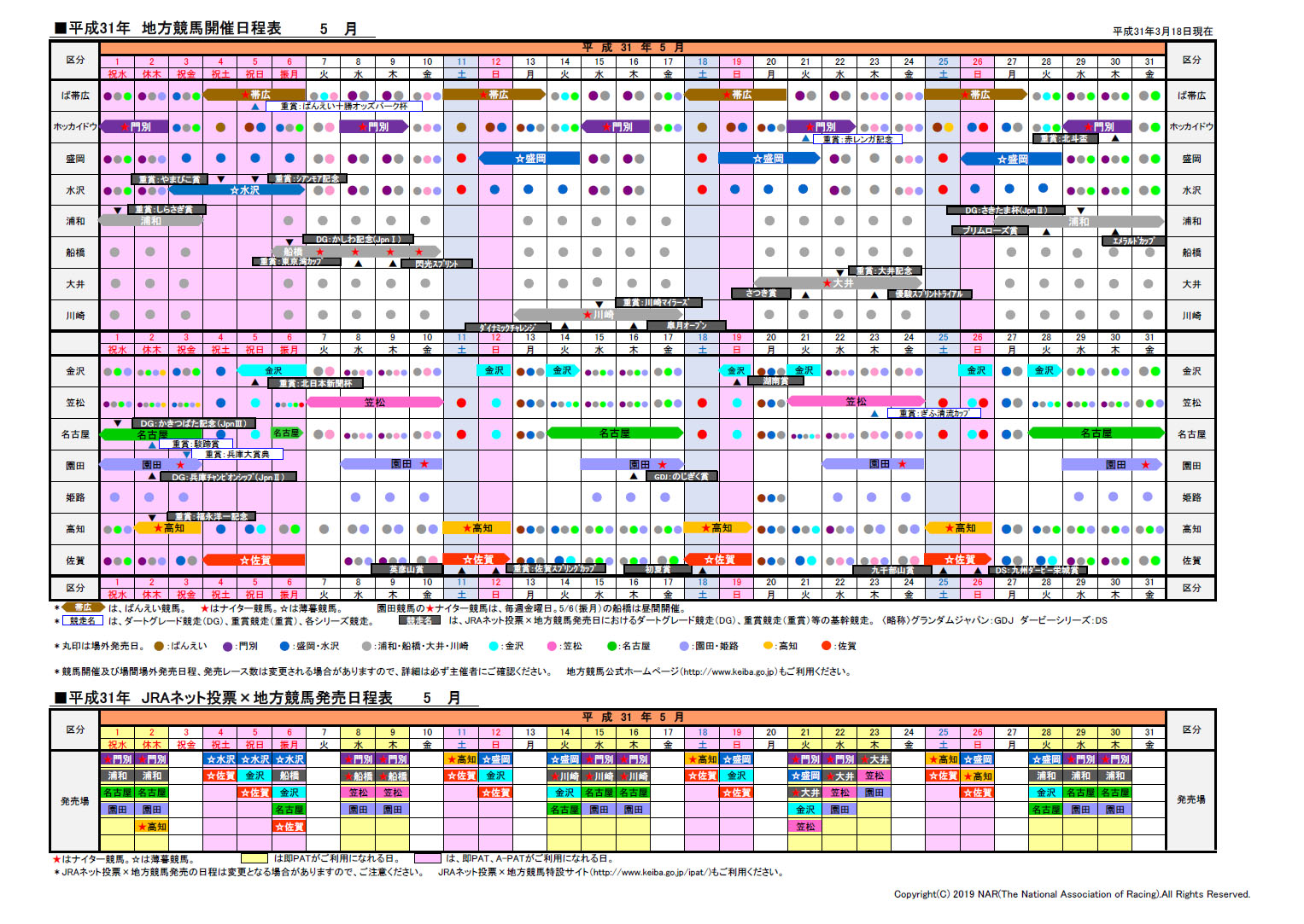 2019年日程表ダウンロード