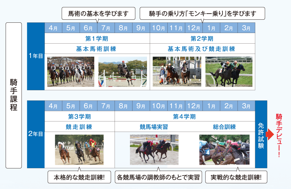 現在、地方競馬で活躍している騎手のほとんどがこの騎手課程を修了しています。