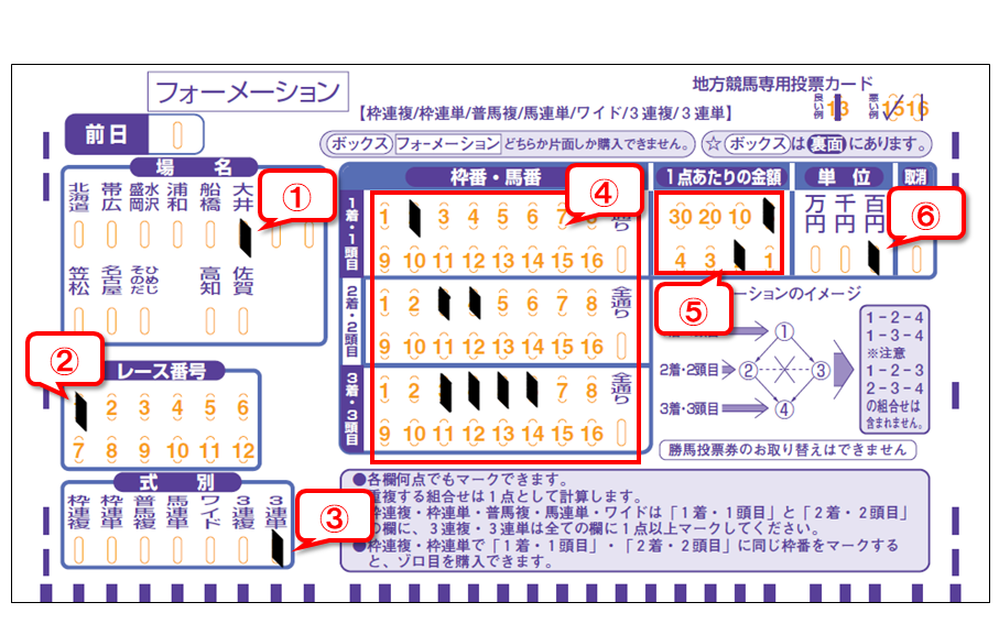買い目が決まったら、投票カードに買い目をはじめとする必要事項を記入しましょう!