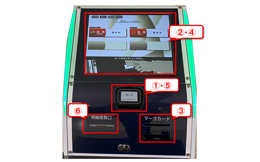 購入の流れは「投票カード(マークカード)の記入」⇒「自動発払機での購入」となります。
