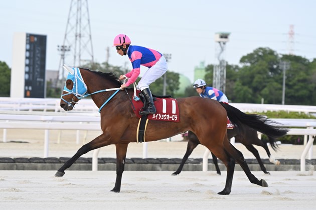 勝ちみに遅く、初勝利まで6戦を要したが、ユングフラウ賞と桜花賞で4着に食い込むと、続く留守杯日高賞(水沢)で重賞初制覇。園田ののじぎく賞でも3着に好走し、グランダム・ジャパン3歳シーズンのポイントリーダーとして、最終戦に駒を進めてきた。「遠征続きでも状態はキープできています。左回りはこなしているし、父が天皇賞馬のレインボーラインなので、長距離も大丈夫でしょう。グランダム・ジャパンも勝ちたいところなので、ひとつでも上位を目指してほしいですね」と市村誠調教師。どこからでも競馬ができるセンスの良さがあり、ダートグレードのペースにも対応できるはず。ここもレースの流れに乗って、上位争いを演じるに違いない。