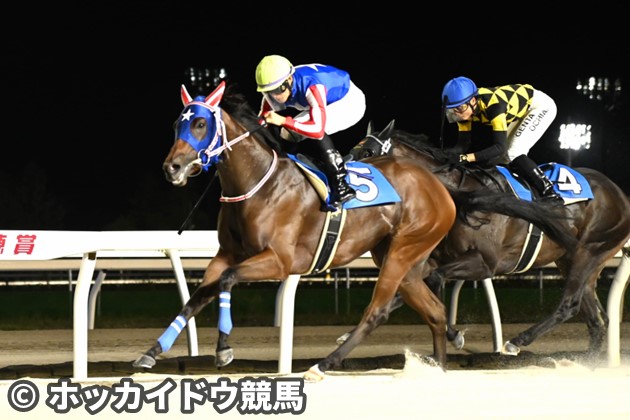 5戦目になった前走の新潟戦で待望の初勝利を挙げた。レースについて安田助手からは「ハナを切った馬が速いペースで行って、ちょうどいい位置に収まりました。うまく嵌まった気はしますが、ラストは相手の脚が上がったところでよく捉えてくれましたよ。出していくより、ためを作る競馬が合います」と回顧していただいた。勝ったあとは在厩で調整を進めて、10月27日に栗東を出発して門別入り。「使ってきて内臓面はできていますから、速い追い切りは要らないでしょう。あとは北海道への輸送をクリアできれば力を出せそう。地元の道営馬は強そうですが、ここもリズム良く脚をためて、頑張ってくれればと思います」とのことだった。