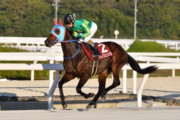 初戦は10月の京都。好位の馬込みで行きっぷり良く追走し、4角でも手応えは十分。直線に向いて前があくとすかさず割って入り、ノーステッキで抜け出して4馬身差をつけた。自身のラスト3Fは37秒7だが、1Fは12秒2。スローペースでもなかったことから掛け値なしに優秀な数字で、後続がちぎれたのも無理はない。2戦目はJBC2歳優駿。発馬は速くなかったが、長く脚を使ってラスト100mで先頭、サンライズジパングを突き放した。前肢のたぐりが強くてパワフルな走り。スタミナも決め手もある。前走でもまだ体に余裕があったことからも3戦目でも上積み十分。中間の動きもしっかり。初のマイルは課題だろうが、走りから左回りは問題ないはずだ。