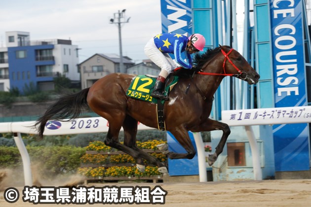 800mのデビュー戦は4着に敗れたが、1400mの2戦目を7馬身差の圧勝で初勝利。競走除外を挟んで臨んだ3戦目も6馬身差、4戦目のルーキーズサマーカップも5馬身差と、1400mに距離が延びてからは圧勝の連続で3連勝を決めた。単勝1.8倍の1番人気に推された前走の鎌倉記念は先に抜け出した先行2頭を捉えられず、後ろからも1頭にかわされて4着。初めての川崎での実戦に戸惑ったのか、3連勝のような早めに先頭に立って押し切る競馬ができなかった。藤原智行調教師は「しっかり乗り込めていて、前回よりはいい状態です。今回は前回と同じ競馬はさせないつもり。チャンスがない馬ではないと思っています」。大一番の巻き返しに意欲を燃やしている。