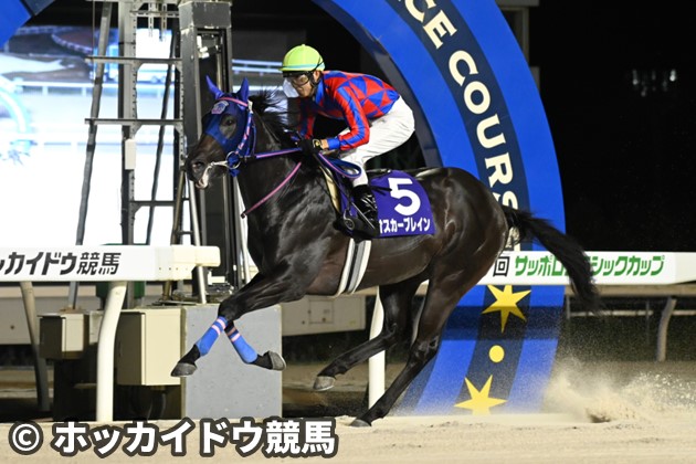 1番人気に推された初戦こそ芝で4着に敗れたが、立て直されダートに矛先を向けて3連勝。父は米国で芝のG1を5勝した名馬だが、こちらはダートに高い適性を示している。前々走の走破時計は前週に行われた古馬2勝クラスと同タイムと時計勝負にも不安はない。前走は坂路で好時計連発だったが、当日は12kg増の太めの体。レースはこれまでと違い、後続に早めに被される厳しい展開だったが、それでも直線は非凡な勝負根性を発揮してハナ差の接戦を制した。間隔が詰まるが、身のこなしが柔軟で体も締まって好気配。ダートで底を見せておらず、左回りも経験済み。初のナイター競馬でも有力。昨年のデルマソトガケに続き音無厩舎の連覇に期待したい。