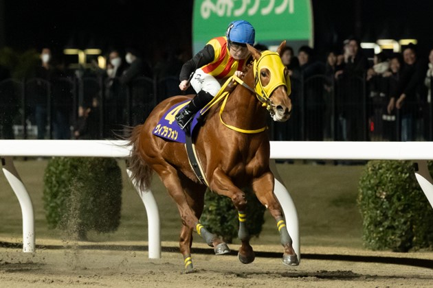 JRAでは7戦を消化して4勝をマーク。神奈川記念での2着を含め、全て3着以内を確保する好成績で大井に移籍した。その初戦となったクイーン賞JpnIIIは上位2頭に突き放されたものの、じわじわと伸びて3着に追い上げ、牝馬ダートグレードでの力上位を証明。藤田輝信調教師は「前走はよく頑張ってくれましたね。普段は牝馬らしくカリカリしているけど、レースでは落ち着きがあるし、調整についてもだいぶつかめてきました。相手はさらに強くなると思いますが、川崎コースをこなしているので小回りに不安はないですし、勝ちを狙っていきます」と期待を口にする。早めに動く競馬もできるので、園田特有の流れにも対応できるはず。初タイトルに期待がかかる。