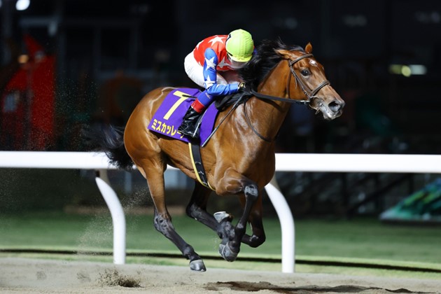 昨年の東京2歳優駿牝馬は4連勝で重賞初Vを飾った。逃げ粘った前走の東京プリンセス賞は勝ち馬にクビ差2着だったが、負けて強しの競馬。その後は3週間ほどのリフレッシュ放牧をはさみ、5月中旬に帰厩。6月6日には初めての川崎競馬場で最終追い切りを行った。「(単走で)内容も良く、思っていた以上の時計は出ましたが、厩舎へ帰ってからもカイバは食べています。遅生まれ(5月12日)なので、これまでは体の弱さや反動もありましたが、今はリバウンドもなくなり、3歳馬らしくなってきたなぁと感じています」と月岡健二調教師。距離延長については「競馬では見た目以上にフワッとするところがあるので、それをいい意味で生かしたいですね。ポテンシャルの高い馬ですし、良い競馬をしたいです」と期待を込めた。