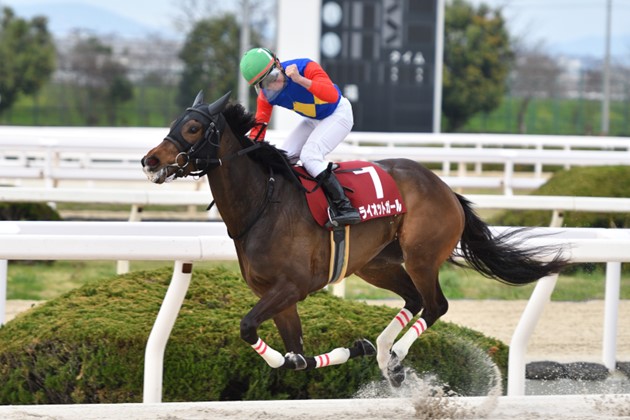 軽快なスピードを武器に、ラブミーチャン記念と楠賞を制覇。今年の梅見月杯でも0秒1差の3着に粘るなど、全国の舞台で好走している。前走のしらさぎ賞は4着だが、初めての左回りに加えて大外枠、さらにスタートで滑ったこともあり、先手を奪うのにだいぶ脚を使った。スムーズに逃げられれば、さらなるパフォーマンスを発揮できたはずだ。福永敏調教師は「前走後はここを目標に在厩で調整してきました。中間も好時計が出ていますし、馬体はできている感じです。相手はそろっていますが、他馬が牽制し合うような展開になってくれれば」とポイントを挙げる。作戦に迷いがないのは強みで、左回りも2度目。自分のリズムで逃げられればチャンスが巡ってくる。