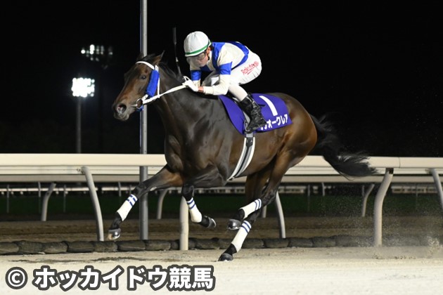 JRA未勝利から一昨年、北海道に移籍すると、JRA未勝利交流を含む4勝を挙げた。南関東に移籍後も7勝し、B1まで出世したが、今春に北海道へ再転入してきた。その初戦となるヒダカソウカップで、ロングスパートから後続を3馬身突き放し、重賞初制覇を飾ると、ノースクイーンカップでも2着に健闘。今季は充実期を迎えた。「ビューチフルドリーマーカップと迷いましたが、輸送を考えずに調整ができる地元の大一番を目指すことになりました。長く良い脚が使えるのが、サンオークレアの最大の武器です。JRA勢は強力ですが、地元代表として恥じない結果を出せるよう頑張ります」と、五十嵐冬樹調教師。15日に3F39秒1-1F13秒5、20日は3F44秒4-1F14秒4と、余力ある中でもしっかりと坂路を駆け上がっていた。