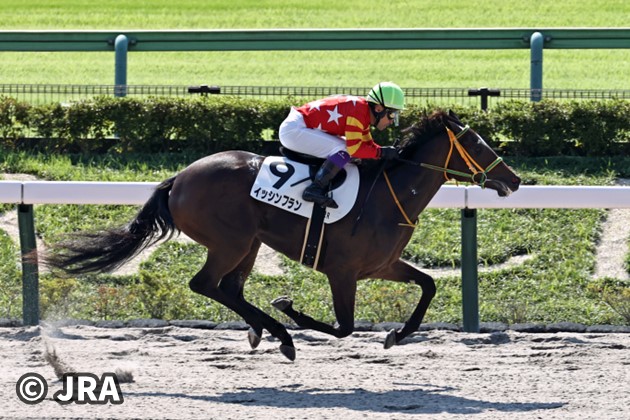 デビュー戦は9月の中京。丹念に乗り込まれていたこともあって好仕上がり。要所に筋肉がつき、バランスもとれて体を良く見せた。ポンと出てスッと行き脚もついて2番手から。道中も手応え良くスムーズに流れに乗り、4角で逃げ馬の外に並びかけた時も抑えたまま。ラスト300mの手前で単独の先頭に立ってから追い出すと、左手前のままでもしっかりと反応して押し切った。勝ち時計1分23秒9は同日の未勝利より2秒0も速く、古馬1勝クラスと同じで非常に優秀。しかも上がりはこちらの方が速かった。2着ダノンフィーゴが次走で圧勝したことからも素質は推して知るべし。回転の利いたキビキビとしたフットワーク。中間も順調に乗られて動きも体も良し。1ハロン短縮も問題なく、今回も期待できる。