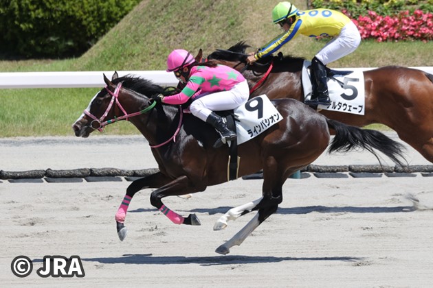 新馬戦が始まった6月にすぐデビュー。勝ち馬から1秒5も離される大敗に終わったが、芝の1600メートル戦はこの馬のカテゴリーではなかった模様。その後、4カ月以上、間が空いたがダートに変えて距離も1ハロン短縮の1400メートルの牝馬限定、未勝利戦に出るとここを楽勝。好スタートを決めながら掛かる事なく好位を追走すると、4コーナーではほぼ持ったまま先頭に並ぶ形。最後の直線では早目に抜け出して最後はゆうゆうゴール。2着に5馬身もの差をつけてみせた。その後の中間は放牧に出さず厩舎で調整。竹内調教師は「反動もなく、その後も順調にきているので、期待しています」と力こぶを見せる。相手は一気に強化されるが期待出来そうだ。