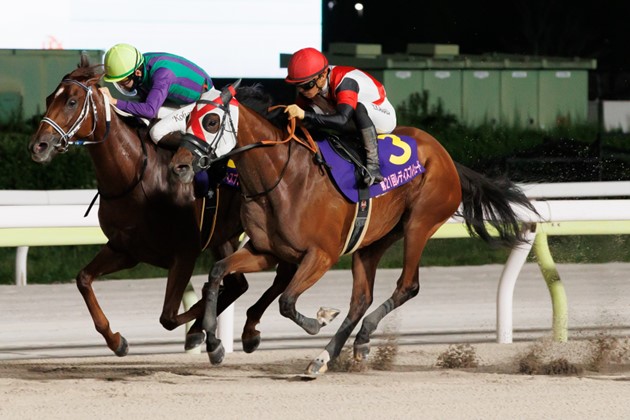 JRA時代はデビューから2連勝を飾り、3戦目の関東オークスJpnIIは5着。今年3月に3勝クラスを勝ち上がり、オープン入りを果たした。この夏、大井の真島大輔厩舎(小林分厩舎)に移籍。初戦のスパーキングレディーカップJpnIIIは出遅れなどもあり7着だったが、前走のブリーダーズゴールドカップJpnIIIは地方最先着の3着に好走した。真島調教師は「交流重賞でもやれる感触はつかめました」と手応え。調教にも乗り、「今回は自信を持って強いトレーニングを積んできました。それでも耐えてくれて、攻めれば攻めただけカイバも食べてくれるので、担当の千吉良厩務員とも『すごい馬だね』と話しています。結果はやってみないとわかりませんが、状態はうちに来てから一番。あとは、門別の時のようなビチャビチャな雨馬場になってほしいです」と願いを込めた。
