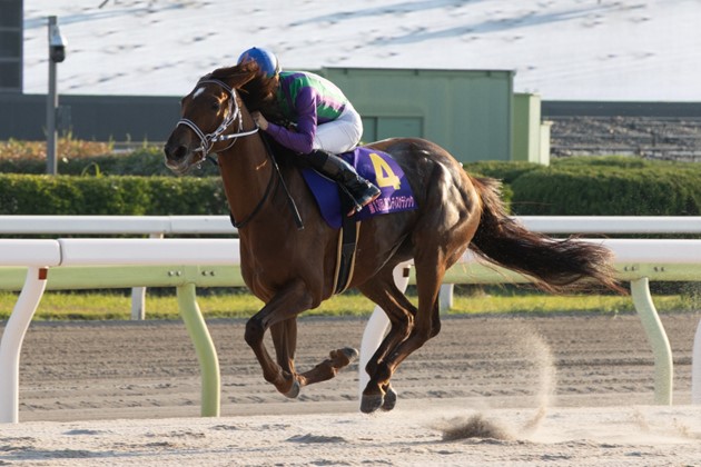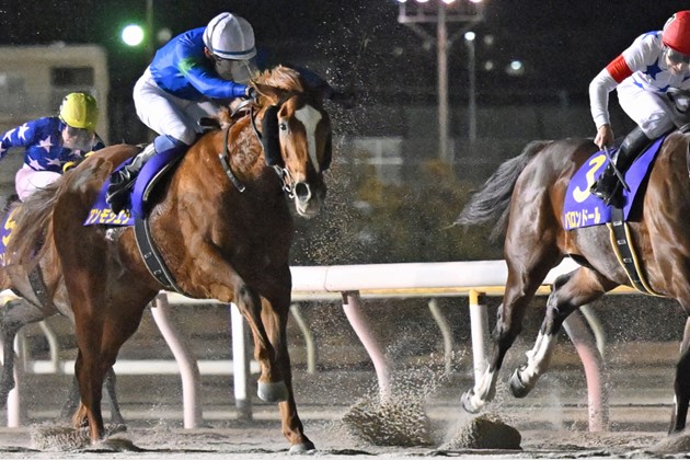 芝の重賞で好走の戦歴があるが、素質を一気に開花させたのは23年のBSN賞だろう。すんなり先行が叶ったとはいえ、開催ナンバーワンの走破時計で快勝。シリウスSでは勝ち馬の決め手に屈したが、続くJBCレディスクラシックは早め先頭から押し切り、後続に4馬身差をつけての圧勝だった。チャンピオンズCはキックバックを気にして大敗したが、手の内に入れる松山騎手騎乗の近走は押して番手を取りに行く競馬が板につき、前走は2番手から完璧に運んで惜しい2着。ナイター競馬も経験豊富で、佐賀の小回りコースもこの馬の脚質にはプラス。中間の動きも鋭くて俊敏さが窺え、CWで1F11秒台もマーク。馬体が洗練され、かなりデキは良さそう。