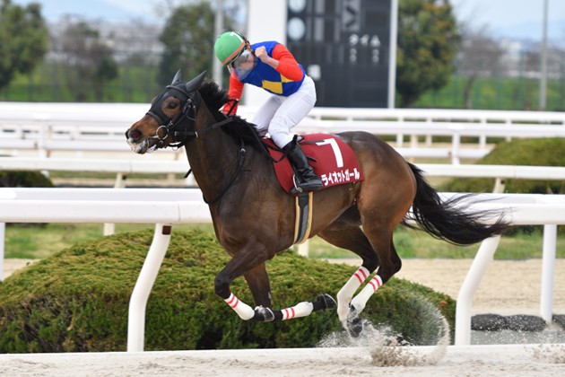 発馬に課題があり、ロスの大きい競馬になりがちだが、そのビハインドをものともせずにここまで5戦4勝。4勝すべてが完勝で、特に重賞初挑戦だった前走のマリーンCは5馬身差のワンサイド勝ち。少頭数の割に前がやり合って展開が向いたとはいえ、強い内容で重賞でも十分通用する力を証明した。使ったあともいつも通り、コースと坂路を併用して調整されており、順調そのもの。相手が更に強化し、小回りの佐賀のフルゲートのレースへの対応も鍵になるが、3歳牝馬で馬体増も示すように成長期にあり、伸びしろは大きく、1度使った分の上積みも見込める。ある程度の位置で流れに乗って早めに動ければ勝ち負けになって不思議ない素質の持ち主。