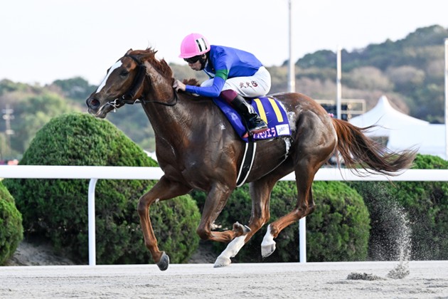 JRA在籍時、4勝全てを左回りで挙げたサウスポー。南関東転入初戦の前々走は得意とする左回りの川崎で持ち味の先行力を存分に発揮。2着に好走した。前走は右回りの大井1400mで5着だったが、川崎マイルへのコース替わりはこの馬にとって間違いなく好材料。市村誠調教師は「川崎へのコース替わりは歓迎だし、調整も問題なくきている。距離も1600mまでは大丈夫だと思う。早めにリードを取って粘り込む形になれば」と話した。強敵がそろうダートグレードの舞台だけに、得意の形に持ち込めるかどうかが鍵になりそうだ。