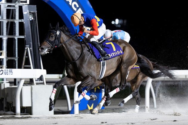 22年10月のデビュー戦を制すと、その後もコンスタントに白星を重ね、今年2月に3勝クラスを突破。オープンで2戦着外に終わると、大井・荒山勝徳厩舎に移籍した。転入初戦となった10月3日の千葉ダートマイル(船橋1600m)を快勝。南関トップマイラー・アランバローズを直線で鋭く差し切って強烈な存在感を放った。今回、相手が一気に強化されるが、未知の魅力十分。荒山師も「前走は届かないと思ったが、きっちり差し切ってくれた。牝馬とは思えないムキムキの馬体で胸前の筋肉が凄い。前走から1F距離が延びるのは歓迎なので、強い相手に割って入れれば」と上位争いに期待していた。