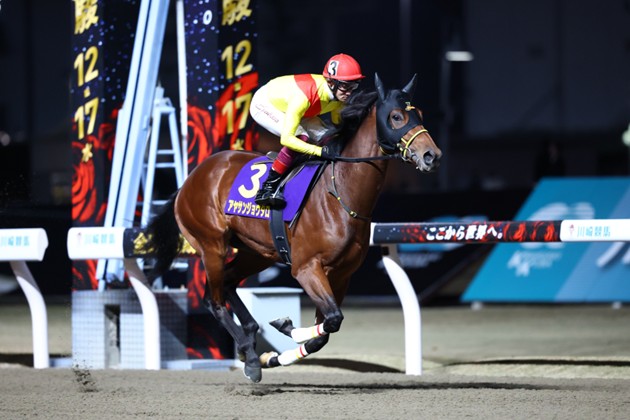 大井でデビュー2連勝。3走目の川崎・鎌倉記念は3着に敗れたが、1コーナーで外に逸走する致命的なロスを挽回。直線で鋭く馬券圏内まで追い込んで強烈なインパクトを残した。続くハイセイコー記念で重賞初制覇。余力十分に2着馬を2馬身半差突き放して器の違いを見せつけた。その後は来たるべき3歳シーズンに備えてきた。ここで中央馬と初対戦。これまで4戦全ての手綱を取った笹川翼騎手は「南関代表になれる馬。少し乗り難しい面があって距離も含めて未知な部分があるが、そんな不安をかき消してくれるようなポテンシャルを感じている」と語る。幾多の名馬の背中を知るトップジョッキーがほれ込むダイヤの原石。今回がまさに試金石となる。