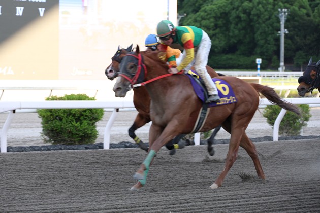 中央時は4戦すべて二桁敗退も、名古屋・宇都英樹厩舎に移籍して素質開花。転入戦の24年9月、下級条件からスタートし8連勝するなど、1走ごとにハードルを順調にクリア。そして新春の名古屋記念で、待望の重賞初制覇に成功。余勢を駆って臨んだ地方全国交流・梅見月杯では、JpnI・2着(25年さきたま杯)のムエックスらを一蹴。スタート後に挟まれて一度下げて外を回るロスがありながら、絶好手ごたえで直線突き抜けて価値は高まる。「ベストは千七ぐらいと思いますが、オーナーの大丈夫じゃない?!の声で挑戦を決めました」と宇都師。初のダートグレード出走でさらにハードルは上がったが、強敵中央勢らを相手に地元の上り馬がどんな走りができるか。ワクワクする。