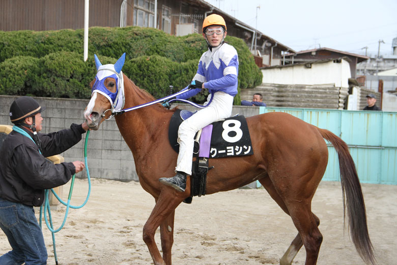 逃げ込みを図るメイレディをめがけ、クーヨシンの佐原秀泰騎手、マーメイドジャンプの東川公則騎手、さらにキミニコイシテの尾島徹騎手が懸命のアクションで馬に推進力を与える最終コーナー。スタートからひたすら続いた先団4頭の戦いにクーヨシンも加わっているという状況に、スタンドからは「差してしまえ!」という声も飛んだ。しかしその応援とは裏腹に、クーヨシンが先頭を奪うことはできなかった。しぶとい伸び脚を披露したキミニコイシテがゴール寸前でメイレディを逆転して勝利。3着にはマーメイドジャンプが流れ込み、クーヨシンは4着という結果になった。