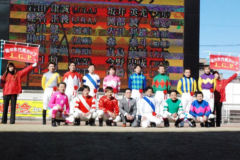 初出場で優勝を飾った山崎誠士騎手は、今年の出場騎手の中では最年少の28歳、成長著しい川崎生え抜きの騎手だ。毎年勝ち鞍を伸ばし、2012年は初めて年間100勝を超える109勝をマークし、南関東リーディングトップ10入りも果たした。普段からファンサービスにも積極的で、表彰式の時にはファンからたくさんの声援を受けていた。また、厩舎関係者からもたくさんの祝福の声をかけられていた姿は、周りから愛されているという人柄が伺えた。山崎騎手は、間違いなくこれからの川崎競馬を担っていく騎手である。そんな川崎所属の後輩騎手の優勝は、佐々木竹見氏にとっても特別に違いない。「おめでとう!」と力強く声をかけ、最後に山崎騎手と固く握手を交わした。佐々木竹見カップジョッキーズグランプリは、先輩から後輩へ歴史を繋いでいくレースでもあるのだろう。