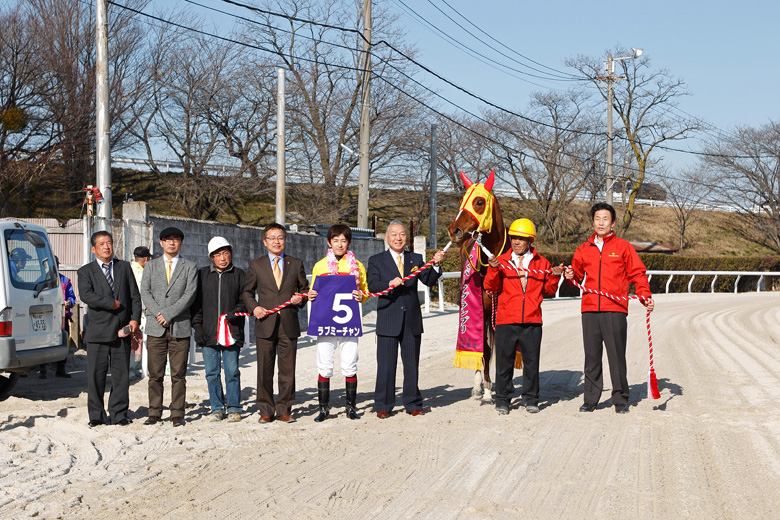 勝ったラブミーチャンは、オッズパークグランプリは佐賀で行われた11年12月に続いての連覇。地元笠松での勝利は、3歳2月のゴールドジュニア以来3年ぶりということもあり、ゴールの瞬間にはスタンドのファンから拍手が起こった。