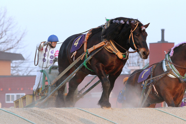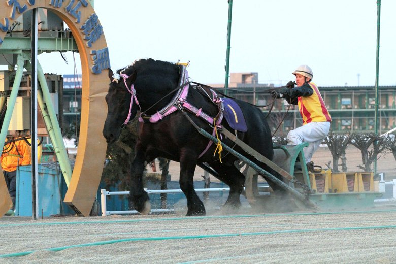 帯広市内には水曜日から木曜日にかけて積雪があったものの、その後は好天が続いていた。当日の馬場水分は2.5%で第1レースがスタートしたが、その後も徐々に乾き、ばんえい記念の発走時は1.8%。まさに力勝負となる舞台がととのった。