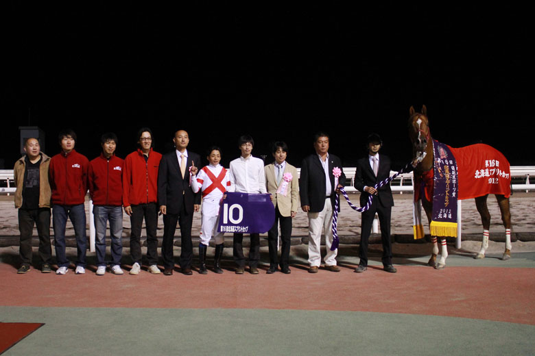 その一方で、JRA未勝利から門別で2連勝し、JRAに戻った後はJBCスプリントJpnⅠ制覇まで一気に駆け上がっていったサマーウインドは、初勝利を挙げた思い出の地に登場し、ホッカイドウ競馬のファンも注目した。昨年から本来の行きっ振りが見られなかったが、「門別や大井のようなコース形態が合うのは、今回の走りでわかりました。大分良くなっていますよ」と、藤岡佑介騎手も復活への手応えを感じていた。