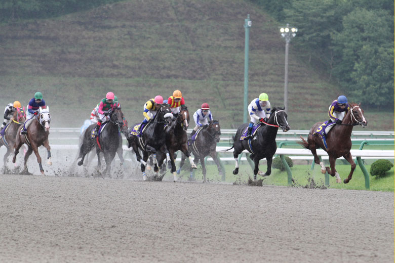 前日から雨が降ったり止んだりという天候で、発走直前にもやや強い雨もあって不良馬場で迎えた注目の一戦。地元の快速馬アスペクトが先頭に立ってペースを握り、高知のナムラハンターが2番手、JRAの有力馬たちはそのうしろに続いた。