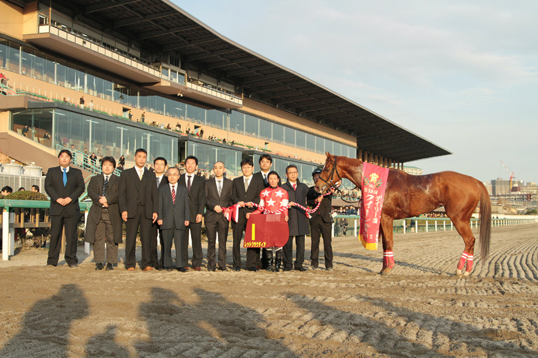 「石坂先生のソリタリーキングで日本テレビ盃は勝たせてもらいましたが、今度はレッドクラウディアでまた船橋競馬場の重賞を勝てたことがうれしいです」と、南関東で一時代を築いた内田博幸騎手は満面の笑み。今では中央に移籍し大活躍中の内田騎手が手綱を取った6番人気レッドクラウディアが、堂々たる逃げのパフォーマンスで今年のクイーン賞JpnⅢを制した。