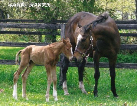 実は、うれしい便りが届きました!!!今年5月18日早朝、初めて出産したそうです(牡馬、父オンファイア)。初産にしては大きな赤ちゃんだったので決して楽なお産ではなかったそうですが、今では落ち着きを取り戻して母性をたっぷりと注ぎながら上手に子育てをしているそうです。