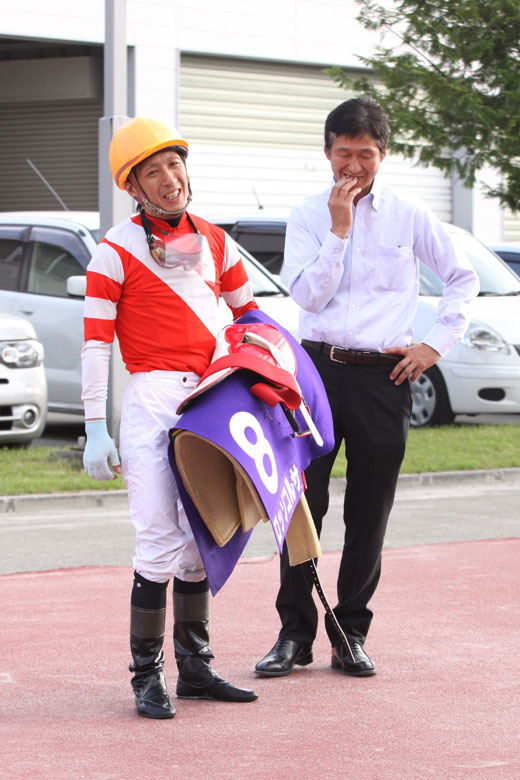 マイペースで走らせてあげようと思って先行したんですが、スタートからなかなか進まなかったので、少し気合いを入れました。再転入した頃は状態があまり良くなかったけど、スタッフが一生懸命立て直してくれてたので感謝しています。3歳馬の中では一番体力のある馬。気性面に課題はありますが、まだ底が見えていませんね。