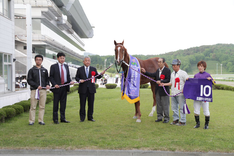 周囲の興奮とは裏腹に、「そんなに早いタイムだとはまったく思いませんでした」と、山本政騎手。というのも、3コーナーあたりで馬が自分から動いてくれると分かっていたので、とにかくマイペースで走らせることに集中していたとのこと。並ばれたら負けない自信があったそうだが、それにしても、ハイペースで逃げ、最後は差し返すという芸当はなかなかできるものではない。「レースでは強いけど、気持ちは弱いんです」と言うように、気性面にはかなり課題が残るようだが、その分まだまだ底が知れないということだろう。