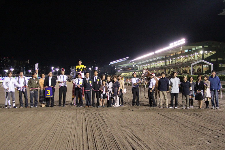 終わってみると、森下淳平厩舎の2頭で決着。しかも馬主、種牡馬(フィガロ)、生産牧場まで同じという、非常に珍しいワンツーフィニッシュとなり、口取りの記念撮影も2頭が並んで行われた。