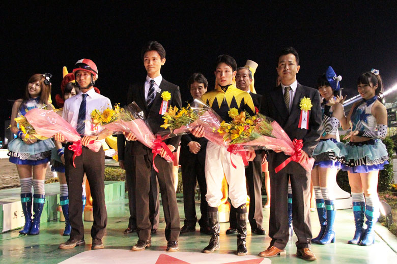 鞍上の本橋孝太騎手は、「ダービージョッキーと言われることが、こんなに嬉しいと思わなかった」と笑顔がはじけた。07~08年の高知競馬での武者修行の後、船橋に戻って急成長を遂げている23歳。昨年は南関東リーディング10位まで勝ち鞍を伸ばし、今年JRAでも初騎乗を果たすなど、まさに充実一途だ。