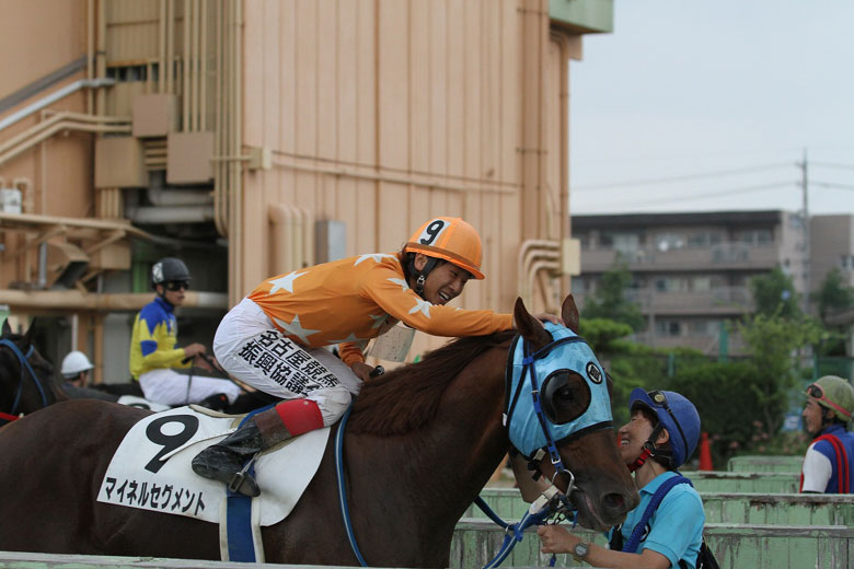 だが、検量室前に戻ってきたマイネルセグメント鞍上の今井貴大騎手は、自分が勝ったことがわかっていなかった。担当厩務員さんに勝利を教えられたところで初めて、「やった!」と力強くこぶしを握り、1着の枠場でしばらく馬から降りずに、勝利の感動に浸っていた。今井騎手はデビューから5年半、毎年コンスタントに勝ち星を挙げているが、重賞勝利は昨年12月に同馬で制したライデンリーダー記念が初めて。それが一気にダービージョッキーである。どうやら今井騎手は興奮状態に入っていたようで、「明日になったら実感がわくんじゃない?」と、川西毅調教師がフォローを入れるほどだった。