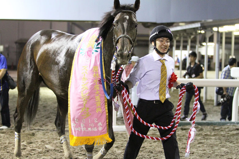 これまで、ダート1400メートル戦で4勝、2着3回という実績を残しているスティールパス。「中央のダート1400メートルは、川崎コースの1600メートルが一番近い」と松田國英調教師が語るように、小回りの川崎コースを考慮し、この条件を狙っての参戦だった。数々の名馬を輩出してきた松田調教師は、過去に自身が手掛けたダートの活躍馬、クロフネやハギノハイグレイド、ゴールドティアラなどを引き合いに出し、スティールパスがその馬たちに匹敵する闘争心を持っていると評価した。「今日のレースを見て、大きいレースを使いにまた川崎に来たいです。ブロードアピール(2001年JBCスプリント2着)のリベンジも果たしたい」と、今回と同じ舞台で行われるJBCレディスクラシックへの意気込みも十分。ダート牝馬路線の新興勢力として未知の魅力を秘めており、今後の成長に期待がかかる。