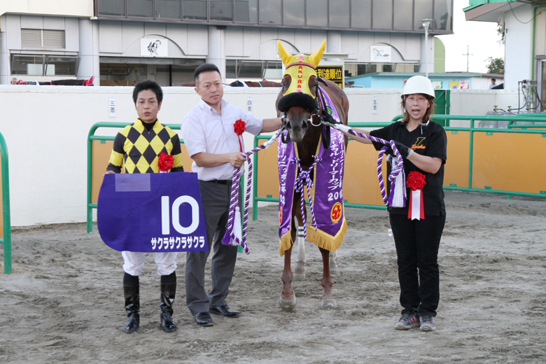 「当初転入してきた頃は差す競馬もしていたのですが、南関東で先行するようになり、折り合いもつくようになって距離も保つようになった」とサクラサクラサクラの田中淳司調教師。「小回りの水沢が合うと思って」という遠征で、前走ノースクイーンカップでの着順を見事に逆転した。
