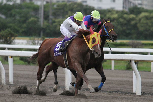 しかもゴール前では4頭ほどが競り合う間を割るようにして抜けてきた。出走馬同士の力差がある2歳の新馬戦なら可能性としてそうしたことも考えられるが、古馬オープンの超短距離戦でそういう展開になるとは、まったく想像できなかった。トーセンクロスは、中央から転入してこれが8戦目での初勝利。中央でも好走は1200メートル以下に集中していただけに、やはり距離は短ければ短いほどというタイプなのだろう。