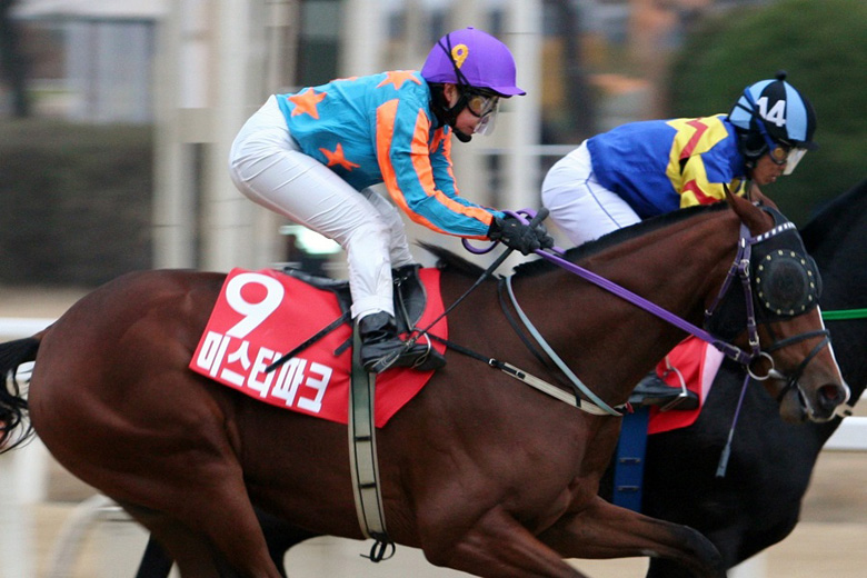 「マレーシアに行く機会があったのですが、そこにちょうど韓国の騎手が交流で来ていて、それから韓国を意識するようになりました」という、これまでにないきっかけで遠征を決めたのが山本茜騎手だ。「ミサキティンバーが走っていたので、東海ダービーが終わってからというタイミングになりました」と、2011年7月1日からプサンキョンナム競馬場での騎乗をスタート。すでにニュージーランドで海外での騎乗も経験していた山本騎手は、特別競走を制してソウル競馬場のグレード競走にも遠征するなど着実に結果を出していくと、ある大役を任されることになった。韓国の最多連勝記録を塗り替える16連勝を達成したばかりのミスターパークの鞍上だ。脚元に爆弾を抱える同馬が記録更新に挑んだ10月16日の騎乗を依頼され、これを無事にクリアすると、続く12月11日の大一番、グランプリの鞍上も託された。「私が乗って脚元が大丈夫だったので、それでグランプリも乗ることになったみたいです」。結果は逃げて2着。前年の覇者にして目下17連勝、人気と記録を背負って正攻法の競馬で勝ちに行ったが、前年の1番人気馬のリベンジに遭った。「負けてしまいましたけど、レース自体は後悔していません」。韓国の伝説的な名馬のハイライトに騎乗した騎手として記憶されることになった“アカネ”騎手は、18勝目を挙げた同馬の次走も鞍上を務めるなど、2012年4月8日まで騎乗して256戦41勝の成績で遠征を終えた。