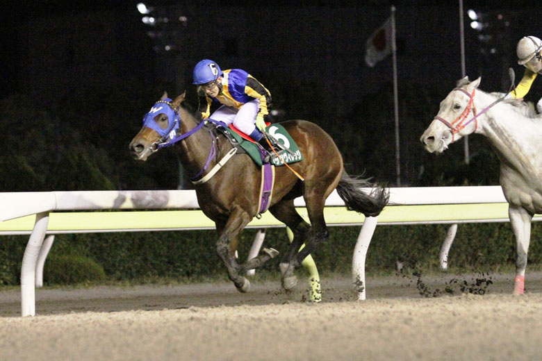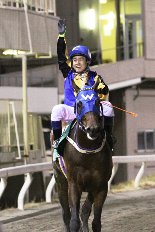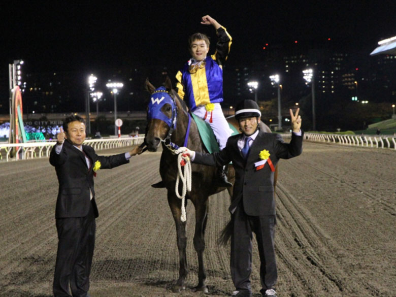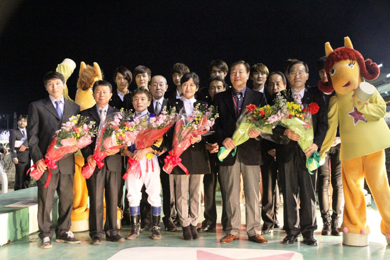 いよいよ当日の11月26日。両主催者および韓国馬3頭の関係者が出席したレセプションを終えた各騎手は、この日の4Rに組まれた『TCK&KRAフレンドリージョッキーカップ』に騎乗した。ソ・スンウン騎手が「馬場が軽く、流れも速い印象だった」と語れば、チョ・インゴン騎手も「レベルはそれほど高く感じなかったが、スピードは速いと感じました」。調教に騎乗した関係者によるとソウル競馬場よりも大井競馬場は時計が出そうだという意見だったが、実戦でもそれを感じたようだった。そして午後8時15分。韓国調教馬の日本初出走、初勝利という歴史的な瞬間が訪れた。ダッシュよく飛び出したワッツヴィレッジは、フライトップクインとフルムーンパーティを引き連れるような逃げ。いずれも逃げがベストの韓国馬3頭が3番手までを独占するという展開でスタートすると、ワッツヴィレッジは最後まで先頭を譲らなかった。