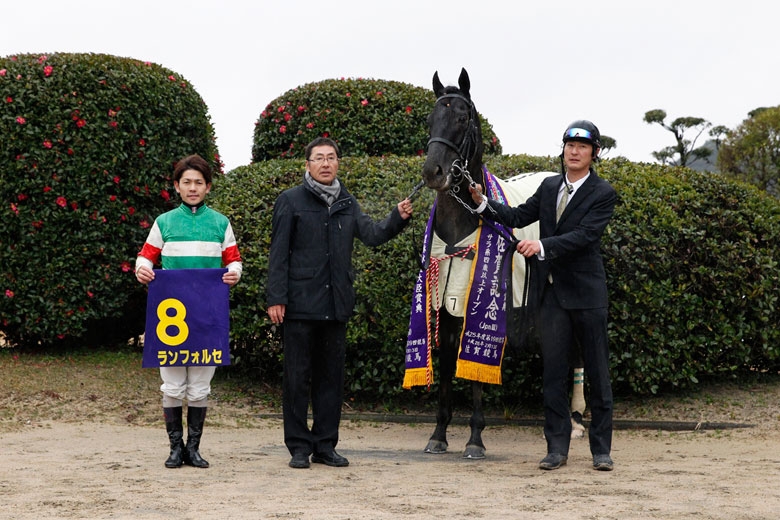 勝ったランフォルセは、3走前の浦和記念JpnⅡが1年8カ月ぶりの勝ち星だったが、2011年の5歳時から毎年1つずつ勝利を重ね、これが4つ目のタイトルとなった。