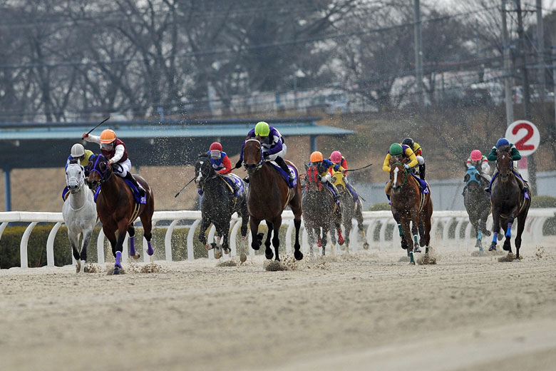 昨年に続き、笠松競馬場での開催となったオッズパークグランプリ。この日の最終レース後にラブミーチャンの引退セレモニーが行われるということもあり、多くの来場者で賑わった。当日は2月にしては気温が上がったが、前日の雨の影響で馬場コンディションは第5レースまで不良。白い砂を使用しているダートコースは、スタンドから見る分にはどのくらい水を含んでいるのかわかりにくいが、吉井友彦騎手によると「不良馬場だと表面に水が浮いていますが、それがなくなって重馬場に変わると、時計がもっとも出やすくなります」とのこと。今年のオッズパークグランプリは、まさにそのとおりの結果となった。