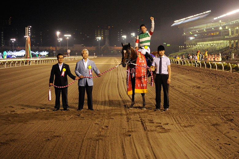 前走はうしろからの競馬だったんですけど、今日は大井だし、前で競馬をしてというアドバイスはしていました。そのとおり、ほとんど完璧に近い乗り方で、馬もしっかり走ってくれたと思います。ここまでの強さは想像していませんでした。ゴールドアリュールのような馬になってほしいと思います。