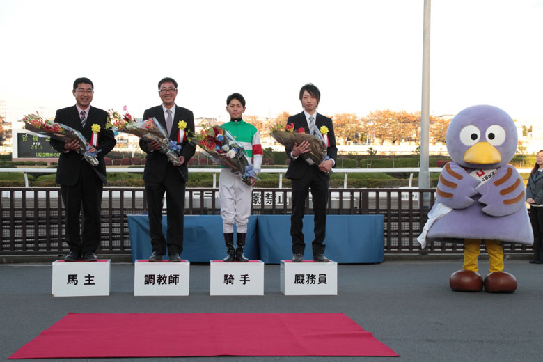 地方馬最先着は、高知のグランシュヴァリエで4着。浦和記念JpnⅡは3度目の挑戦で、2011年は8着、昨年は7着だったが、今年はさらに着順を上げて掲示板を確保した。繁田健一騎手は「前回乗った時より調子は良かったです。前々で競馬をしてくれという指示だったので好位の位置取りになりました。最後は流れ込むような形になりましたが、このメンバー相手によくがんばってくれましたよ」と労った。JRA勢が圧倒的な人気を占め、自身は最低人気の評価だったのだが、全国を知り尽くす古豪の意地を最後まで見せてくれた。