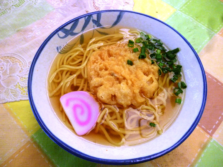 さて、出てきました「姫路競馬場の駅そば」。まさに関西風という感じのダシスープのなかに入っているのは中華麺。さらに天ぷらと万能ねぎ、そしてナルト。それらがまったくアンバランスになっていないのが面白い。駅の「そば」もおいしいけれど、こちらの「そば」もいい味してますなあ。