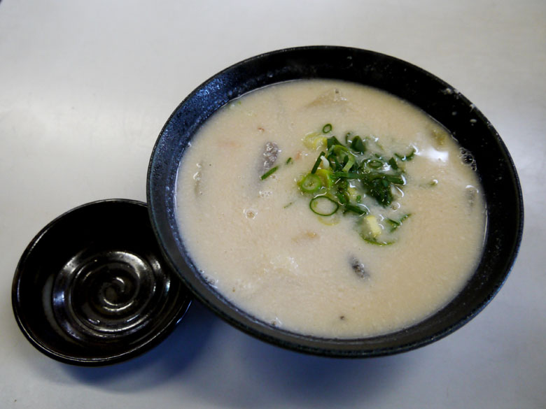 という状況で思いついたのが「園田屋」の「かす汁」。関西で「かす」と言うと、言葉遣いとしてはちょっとアレなのだけれど、この「かす」は心も体も温まるアイテム。店内に入ってイスに座り、注文からそれほど待たずにドンブリが登場してきた。