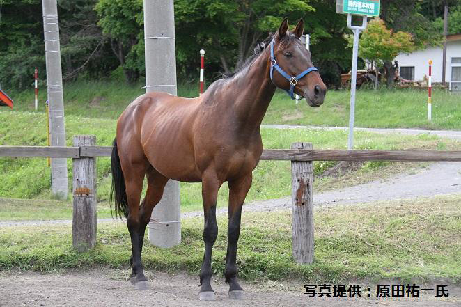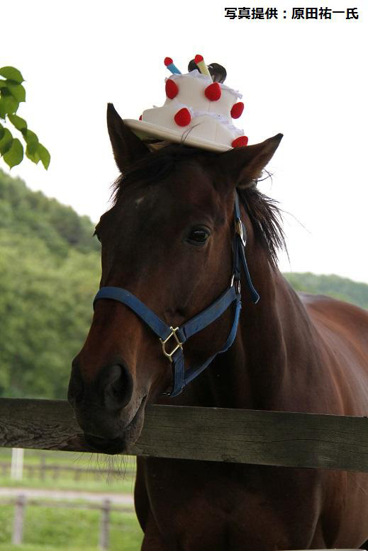 ビッグゴールドは2011年6月から北海道の静内坂本牧場さん(新ひだか町)で暮しています。会員さんたちそれぞれが、『ゴーちゃん』『ゴールドさん』『ビッグちゃん』と愛情たっぷりの愛称で呼んでいて、15歳になった今でも体は若々しく、歯も丈夫で食欲もひじょうに旺盛なので、体調面は何の心配もないそうです。「12歳まで競走馬を続けることができたのも、この丈夫な体のお蔭だと思っています」(岡本さん)。ニンジンは特に大好きで、岡本夫妻がお土産にニンジンを持っていくとバケツ2杯分ほどの量をペロリと平らげ、ときには、スイカやメロンなども……ビッグゴールドはかなりのグルメ(笑)。